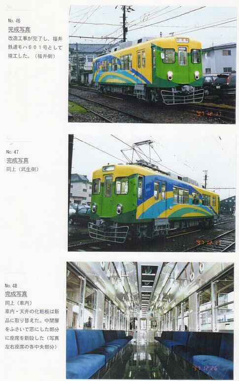 | 福井鉄道601号 工事記録写真帳 名古屋市交通局(名城線)1111・1112号を改造 工事期間1997(H9)年6月~12月 | |