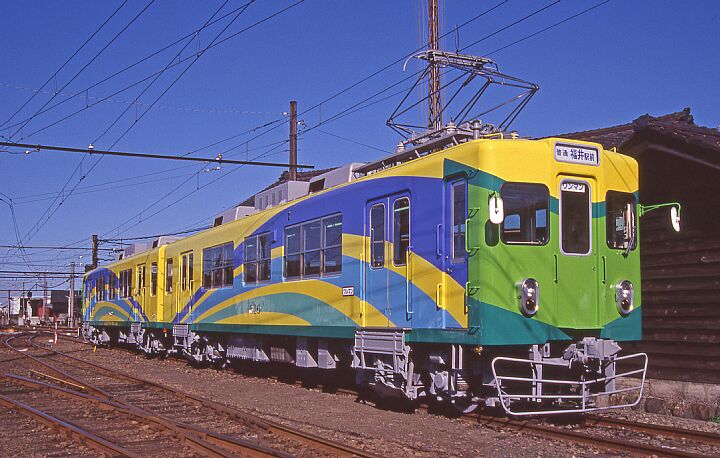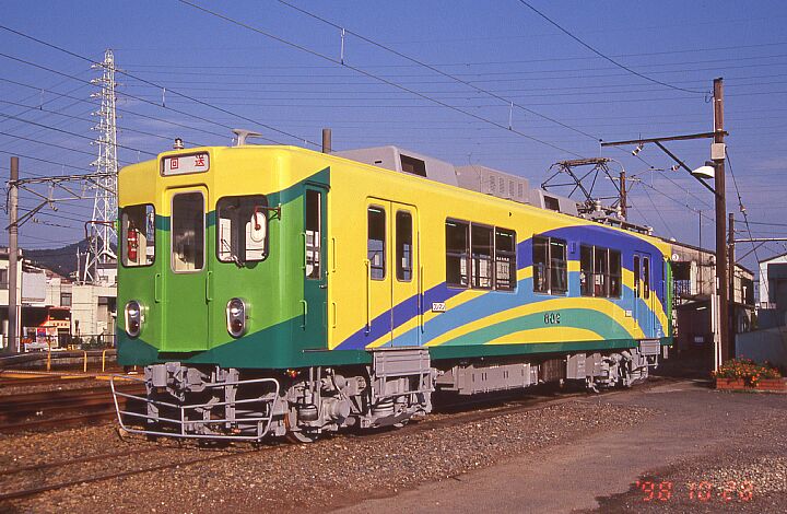 | 福井鉄道600形602号の改造工事(2次車) 1998(H10).5.12名古屋市交通局名港車庫から1200形1201・1202号を搬出。翌日岐阜工場へ搬入し改造工事を実施(601号と同じ工事内容)。2度目のなので工事は順調に進んだ。1998(H10).11.10福井鉄道西武生車庫へ搬入し、調整・試運転後11.20から営業運転開始。 |